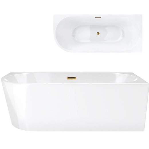 Corsan ISEO volně stojící nástěnná vana 150 x 75 cm se širokým okrajem click-clack zátka Zlatá
