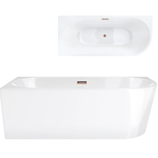 Corsan INTERO volně stojící rohová vana 160 x 74 se širokým okrajem Pravostranná montáž click-clack zátka měď / růžové zlato
