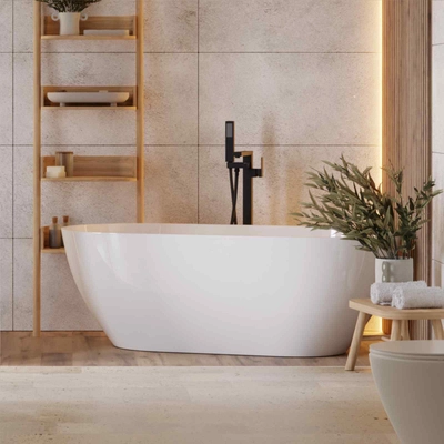 Corsan OLVENA freestanding bathtub 148,5 x 74,5 cm click-clack plug Black