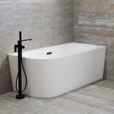 Corsan INTERO freestanding corner bathtub 150 x 74 with a wide edge Right-hand installation click-clack plug Black