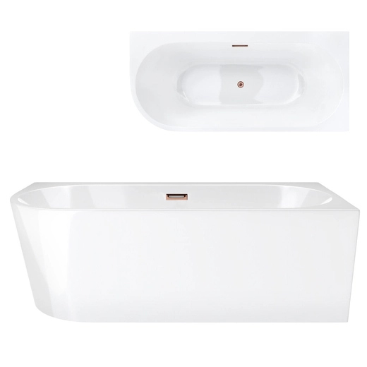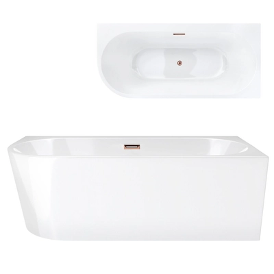 Corsan INTERO freestanding corner bathtub 150 x 74 with a wide edge Right-hand installation click-clack plug Copper / Rose Gold