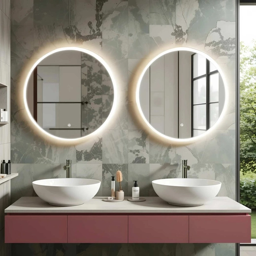 TONDO Lustro ze zmienną barwą LED okrągłe 700 mm, włącznik dotykowy i mata grzewcza, w ramie akrylowej