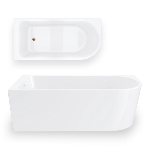 Wanna narożna INTERO V230MLWH 150 cm Montaż lewostronny Przelew szczelinowy Korek klik klak Biały
