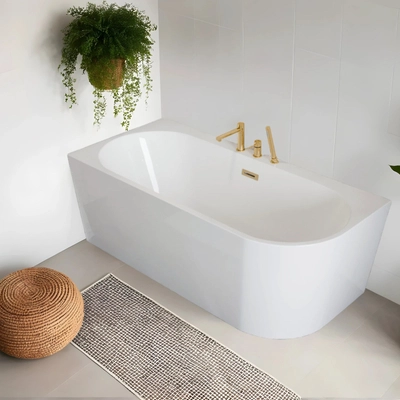 Corsan INTERO voľne stojaca rohová vaňa 170 x 80 so širokým okrajom Ľavá montáž zaklapávací zátka Zlatá