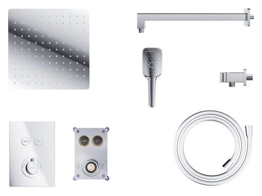Corsan Unterputz-Duschset mit Thermostat BOX Druckknopf Regendusche 25cm Chrom