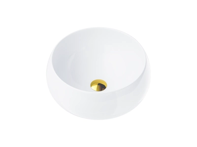 Corsan rundes Aufsatzwaschbecken 415x415x135 mm mit Goldenenem Klick-Klack-Stöpsel