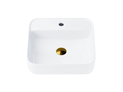 Corsan 649902 Aufsatzwaschtisch, quadratisch, 395 x 395 x 145 cm, mit Hahnloch und Goldenenem Klick-Klack-Stöpsel