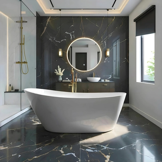 Corsan RENO freistehende Badewanne 170 x 80 cm mit Seitenablage Klick-Klack-Stöpsel Graphit/GunMetal