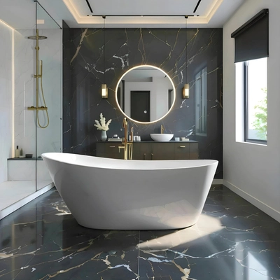 Corsan ISEO wandhängende freistehende Badewanne 160 x 74 cm mit breitem Rand Klick-Klack-Stöpsel Graphit/GunMetal