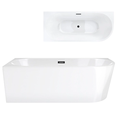 Badewanne wandhängend MONO E029LSGM Slim 160 cm Click-Clack-Stopfen Gunmetal