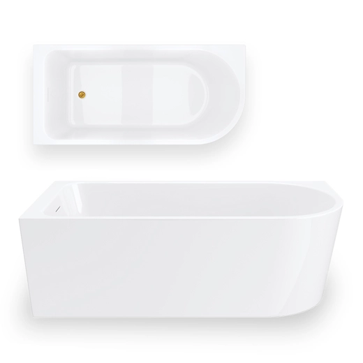 Corsan INTERO freistehende Eckbadewanne SLIM 150 x 75 Linksmontage Klick-Klack-Stöpsel Golden
