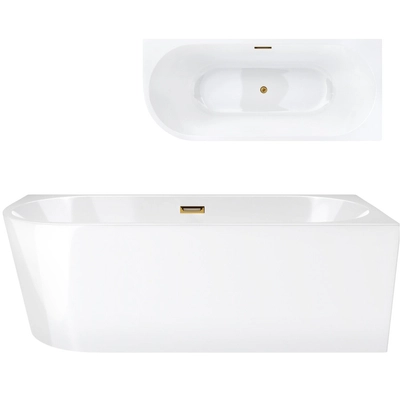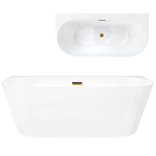 Corsan MONO Wand-Freistehende Badewanne 150 x 75 cm mit breitem Rand Klick-Klack-Stöpsel Golden