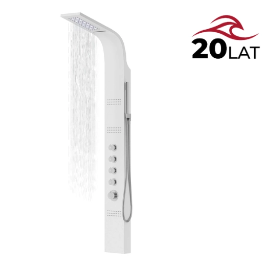 Panel prysznicowy Corsan Alto A017 biały z oświetleniem LED i czarnym wykończeniem