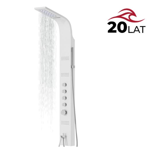 Panel prysznicowy Corsan Alto A017 biały z czarnym wykończeniem oświetleniem LED i wylewką