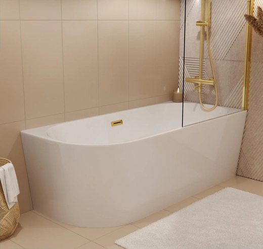 Wanna wolnostojąca narożna Corsan INTERO 170 x 73 Montaż lewostronny Korek klik-klak Złoty