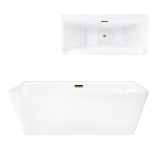 Wanna przyścienna wolnostojąca Corsan ISEO 150 x 75 cm z szeroką krawędzią Korek klik-klak Szczotkowane Złoto