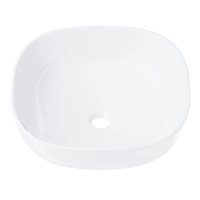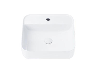 Umywalka nablatowa ANGO UC9902WH kwadratowa 395x395x145 mm z otworem na baterię i korkiem Klik-Klak białym