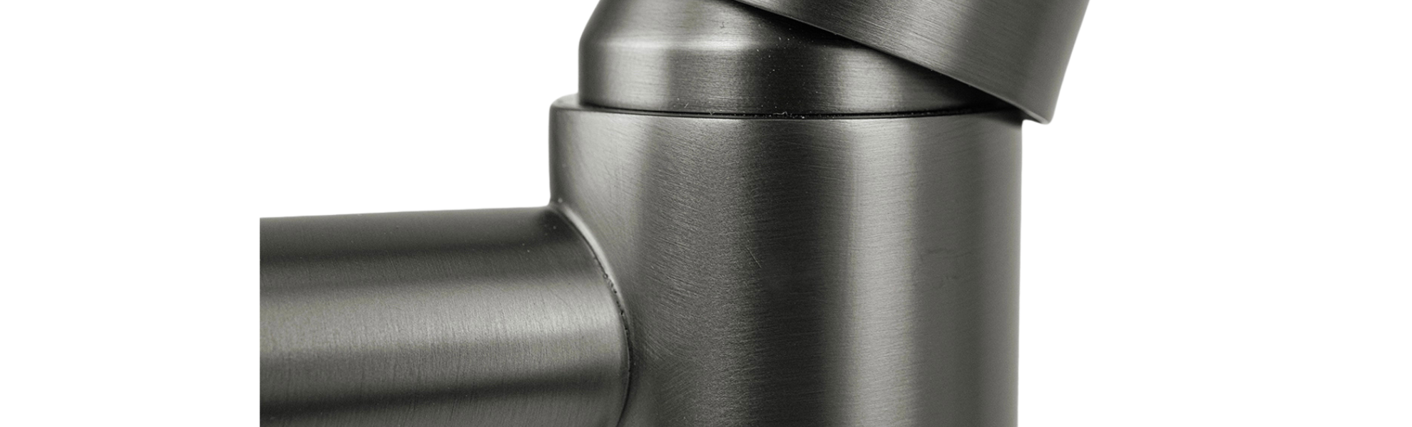 Nie jest szary. Nie jest czarny. GunMetal to stan skupienia światła. W ciepłej tonacji LED-ów potrafi przybrać odcień głębokiego brązu z metaliczną nutą. W chłodnym świetle – chłodnieje, przejmując surowość grafitu. To kolor, który żyje razem z wnętrzem i doskonale pasuje do zarówno jasnych, jak i ciemnych aranżacji. Świetnie współgra z bielą ceramiki, szarością kamienia i drewnem o naturalnym rysunku. Wykończenie wykonane w technologii PVD (Physical Vapor Deposition) to nie tylko styl – to zbroja. Warstwa ochronna jest niewidoczna, ale robi ogromną różnicę. Nie rysuje się łatwo. Nie przyciąga śladów palców. Nie traci koloru. I co ważne – jest bezpieczna: antybakteryjna, antyalergiczna, odporna na zmiany temperatury i wysoką wilgotność. Czyli dokładnie to, czego potrzebujesz w łazience