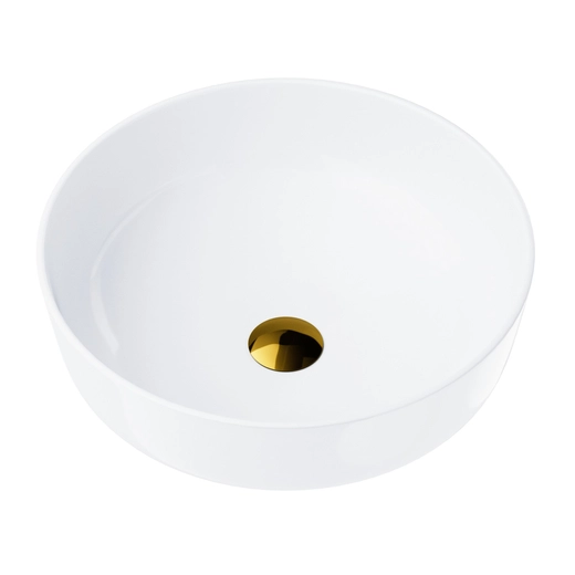 Corsan apvalus stalviršio praustuvas 415x415x135 mm su auksiniu spragtelėjimo kištuku