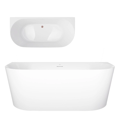 Wanna przyścienna wolnostojąca Corsan MONO E030LRG 160 cm z szeroką krawędzią Korek klik-klak Miedziany / Różowe Złoto