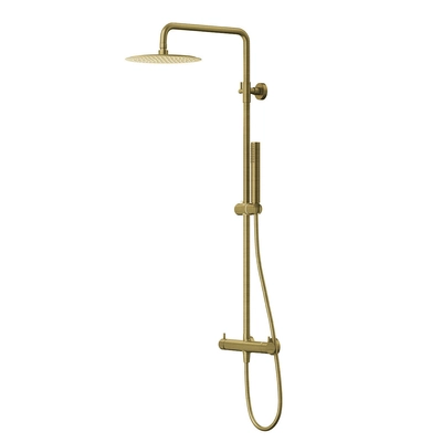 Sprchový set s termostatom Corsan LUGO stĺpik Dažďová sprcha 25cm Výtok otočný Kartáčované zlato
