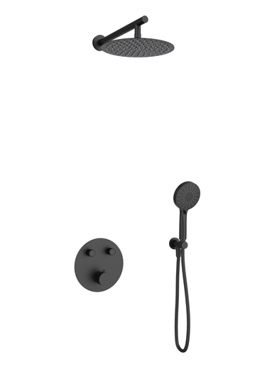 Podstenná sprchová súprava LUGO Z04TBL, dažďová hlavice 25cm, termostatická batéria, sprchová hadica, čierna