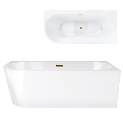 Corsan INTERO voľne stojaca rohová vaňa 150 x 74 so širokým okrajom Pravostranná montáž Automatická zátka Zlatá
