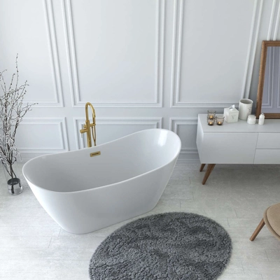 Corsan OLVENA voľne stojaca vaňa 148,5 x 74,5 cm Automatická zátka Zlatá